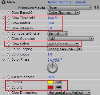 Step 8: Apply Effect > Stylize> Glow and choose the following settings in the dialog box