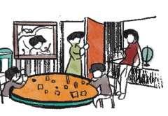 the community space also has an involvement space with the students, where they will learn new things together, play foldable walls near chai shop etc.