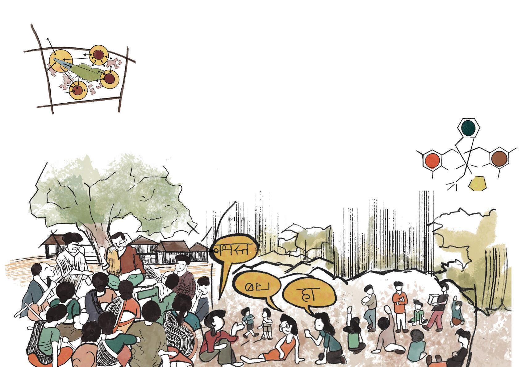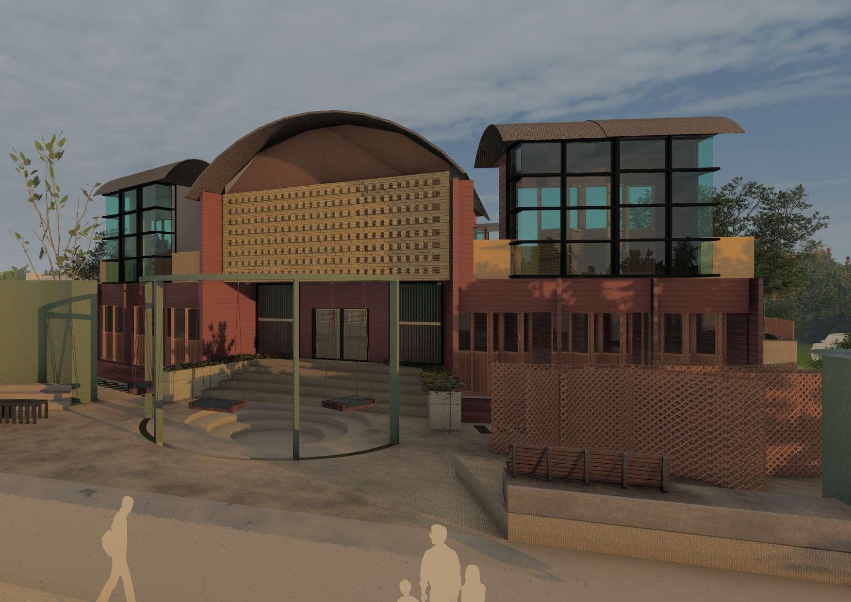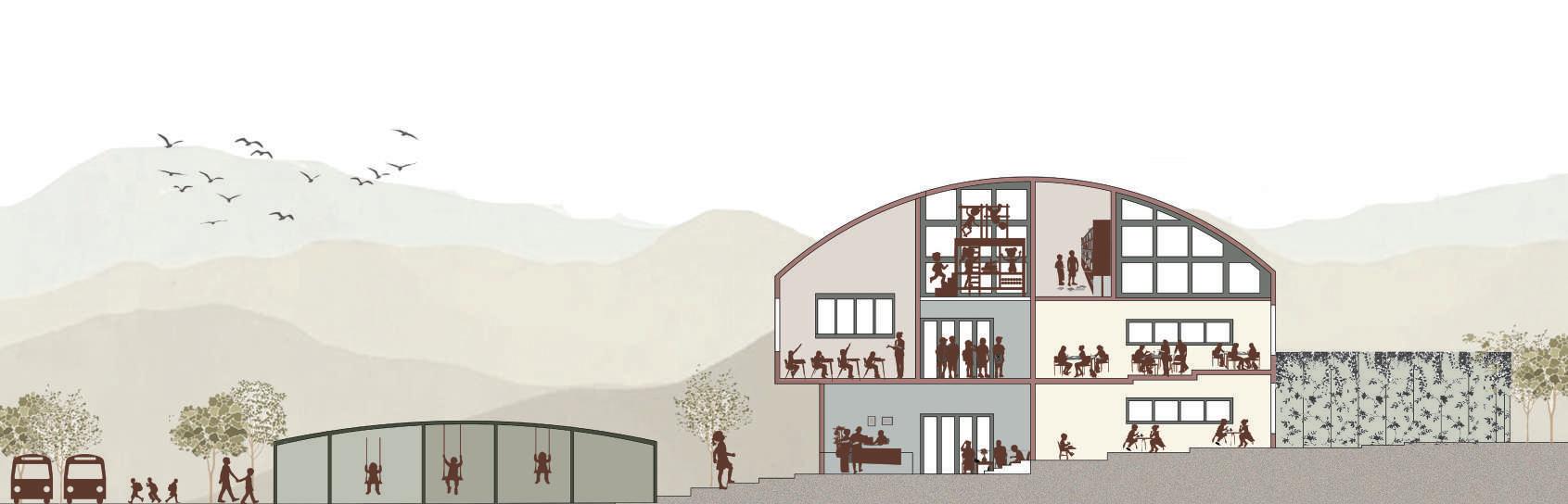 the design is developed by involving a concept where the community act as a catalyst towards the future of the students. the school is designed with respect to community access and the pedagogies are developed such a way that it mutually benefits both the students and the community.the community is zoned into 3 categories. they would be benefitted mutually by exchanging stories and lessons under a tree or students cleaning the surroundings as part of their environment studies etc.