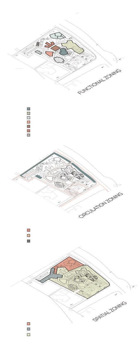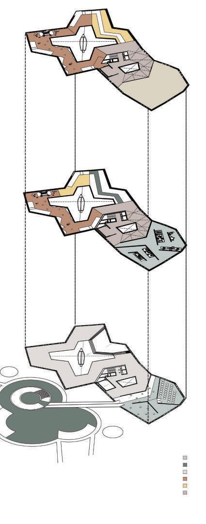 An exploded view of the exhibition and museum plans which hights upto three levels and is connected to an interpretation centre