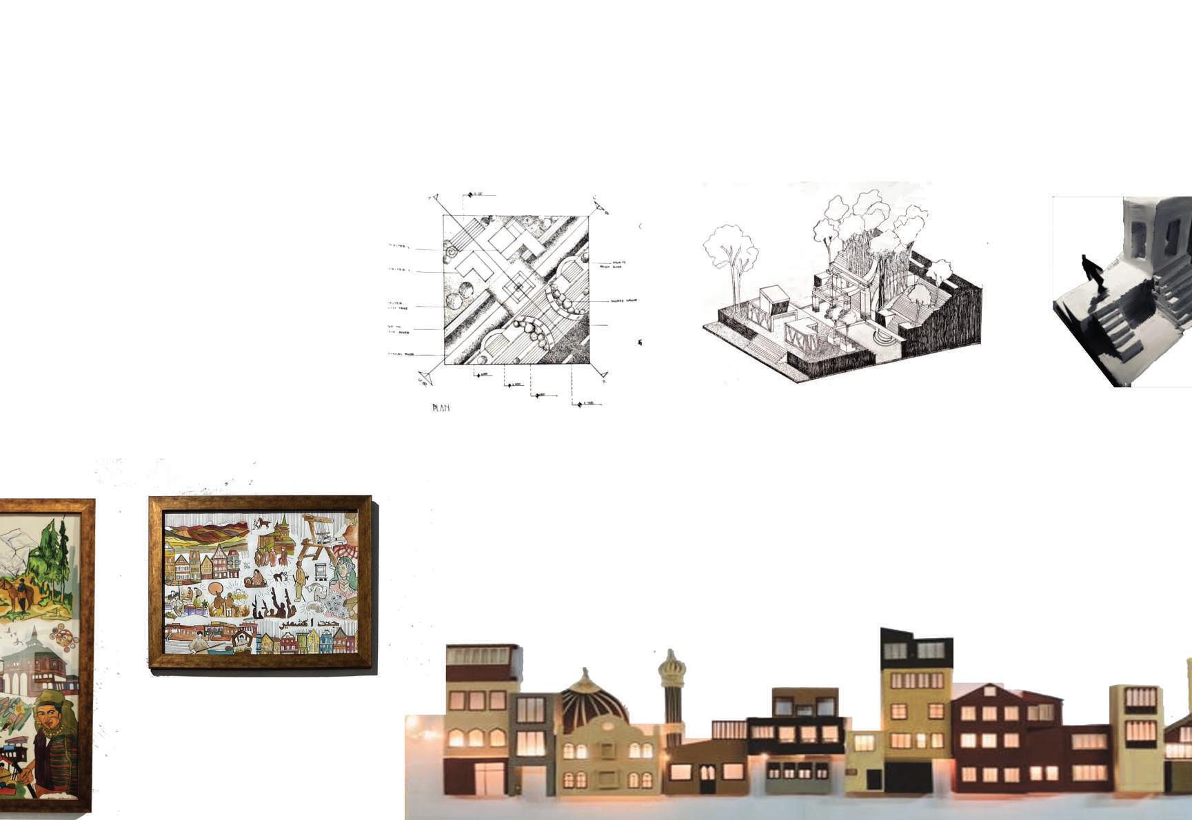 The craft centre evolves along the upliftment through the craft of kashmir and their process appraisal through observation and experience. The design showcase spaces related to experintial walkways through the kashmir crafts and streets.interpretation centre. through my design, i intended a spatial quality which could be experienced by both the local community as well as the visitors of the museum. the exhibition centre and design studios will be knowledge powering stations as well as provide an upliftment of economy to the local community. i developed a concept of falling facades where the facades of the exhibition centre will be showcased with the works of the craftsmen and this could be flexible seasonally. i intended to provide a feel of experience one would get through the process of the craft of kashmir.