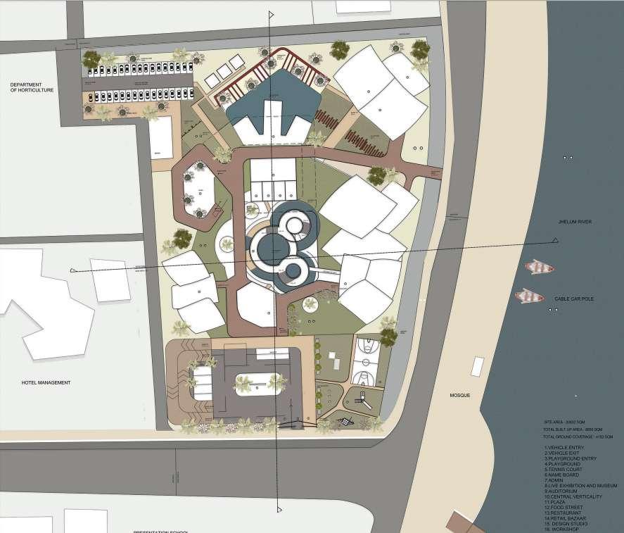the design is inclusive towards all age and is designed with respect to the context, which has a high impact on the site, jhelum river has special significance