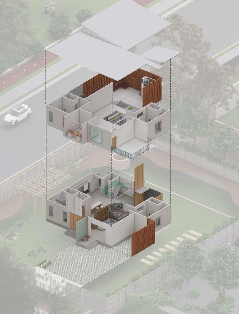 designed for the professional workers and families should be more socialable inorder to relieve and stress. i intended to create spaces where they could coexist and collaborate socially and create act as two sides where one side has all private spaces and the other side meant for socialising a frontyard and a backyard.