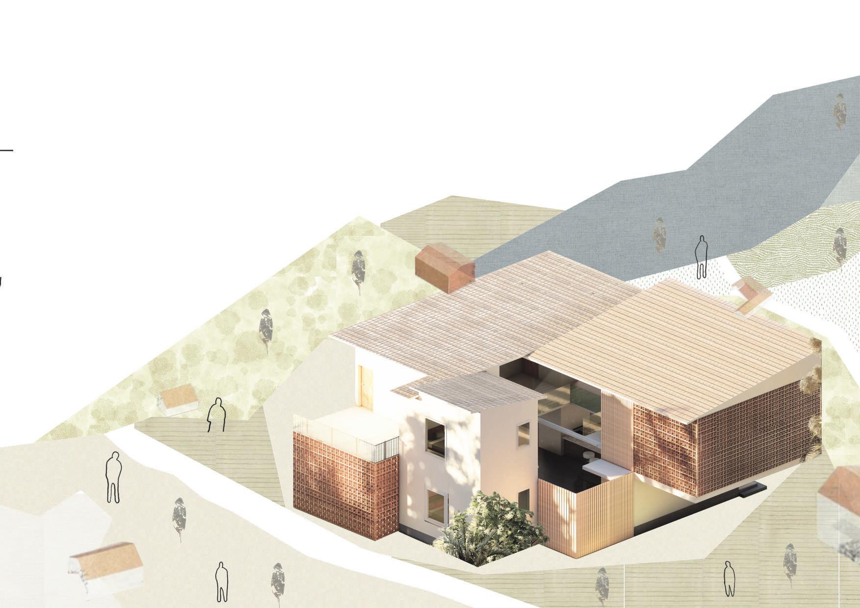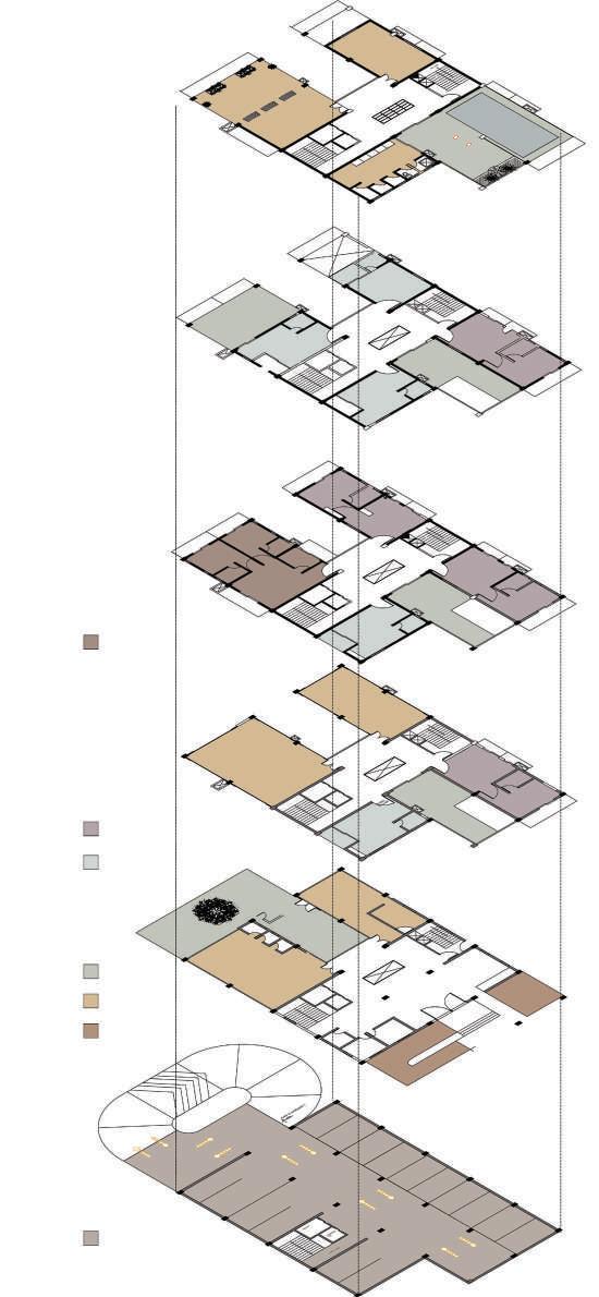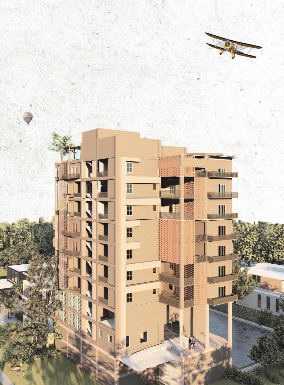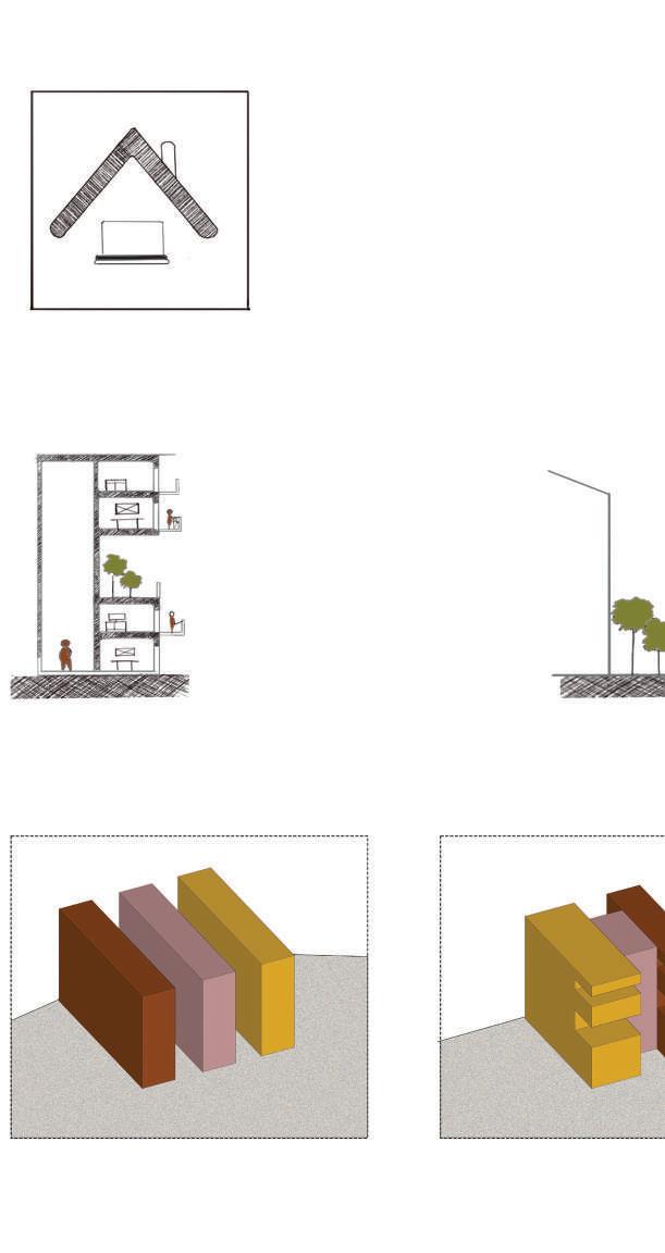 the illustration depicts my thoughts and intentions that arised during the design development. the site had many influences such as the user group comprise mainly of migrant workers connecting the newly formed infopark. they are mainly industrial and professional workers. they dont tend to have much social life along their busy schedule. hence i intended to create a socially connecting space for their homes which goes by the line ‘a home away from home’.
