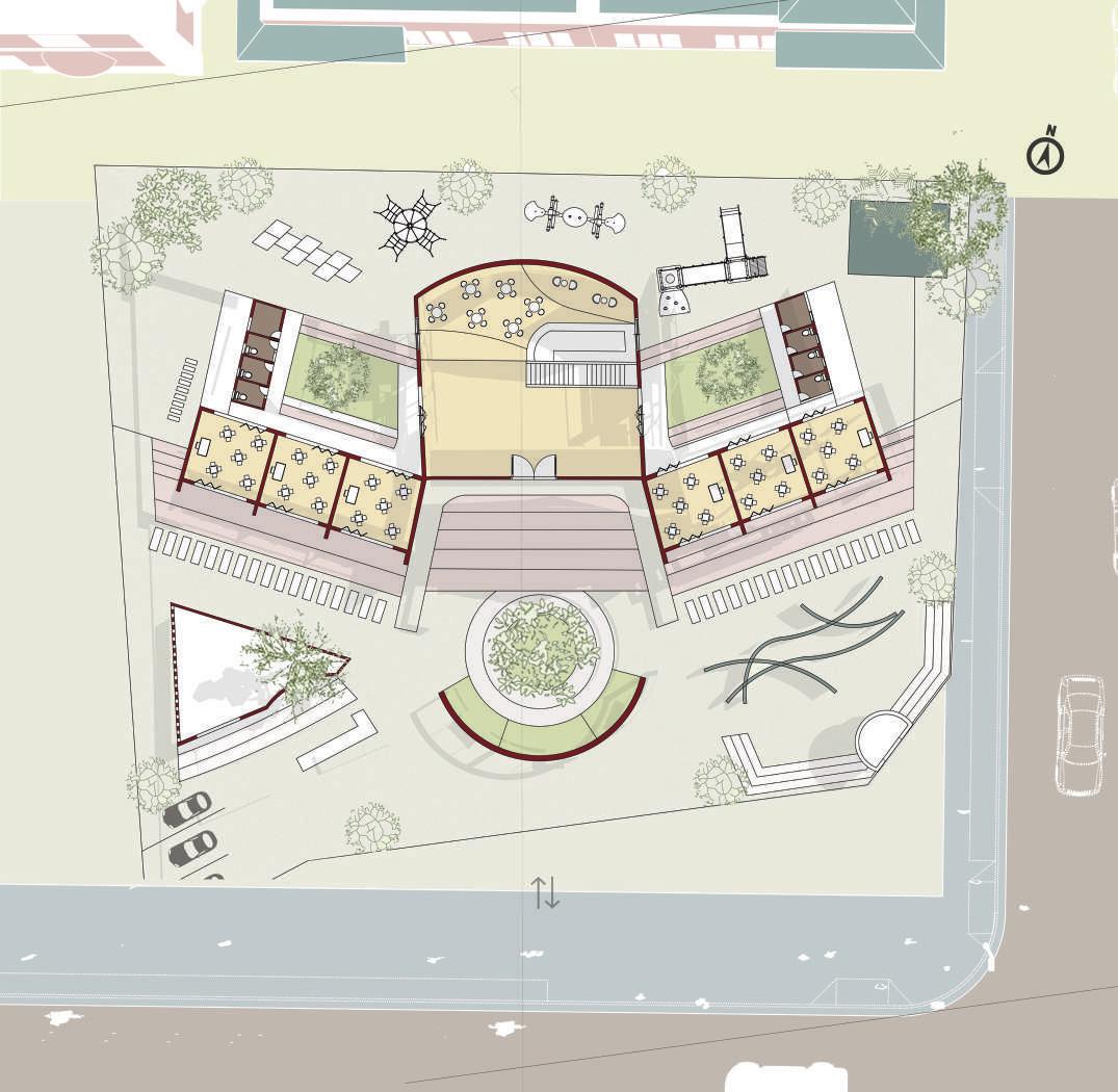 Groundfloor plan : there is a community involvement towards the southern side and the school is placed behind the community area by maintaining the levels of privacy.