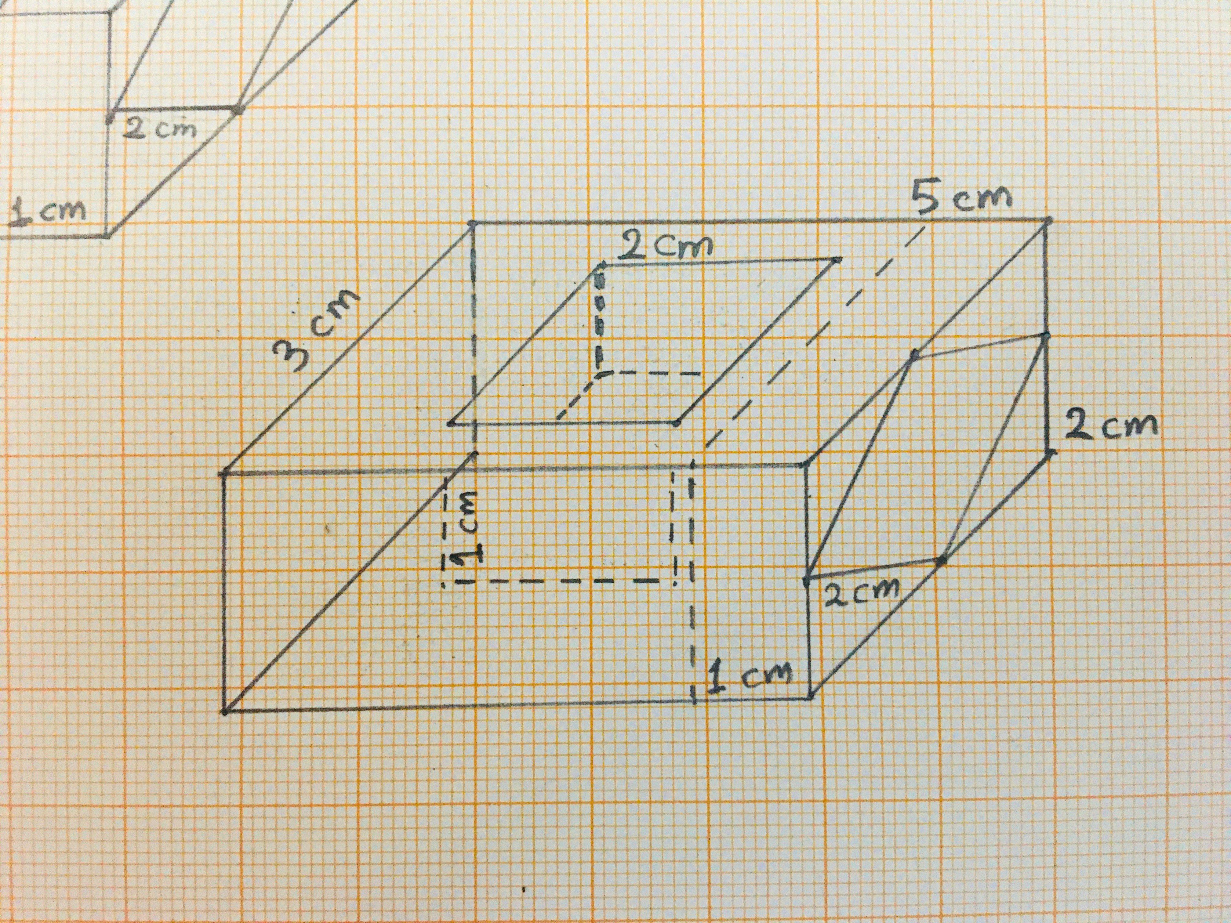 Drawing Steps A- Length = 5 cm B- Height = 2 cm C- depth = 3 cm Cuboid Length of side = 2 cm depth 1 cm A- B- = Rhomboid outward A- Length of side = 2 cm B- depth = 1 cm Square inward