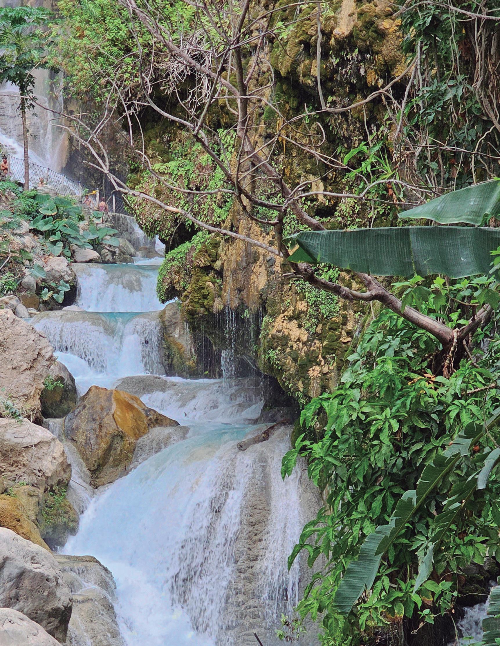 También se pueden realizar recorridos en lancha por el río hacia la cascada, que es totalmente cristalina y alcanza una temperatura de 43 grados centígrados.