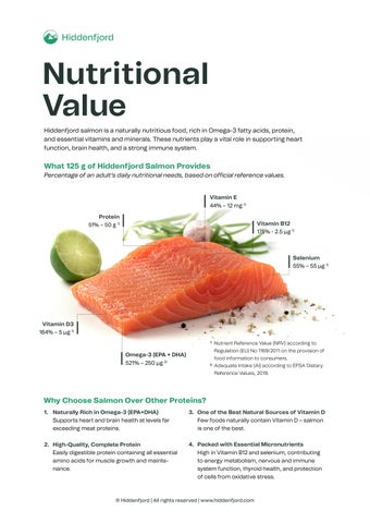 What 125 g of Hiddenfjord Salmon Provides Percentage of an adult’s daily nutritional needs, based on official reference values.