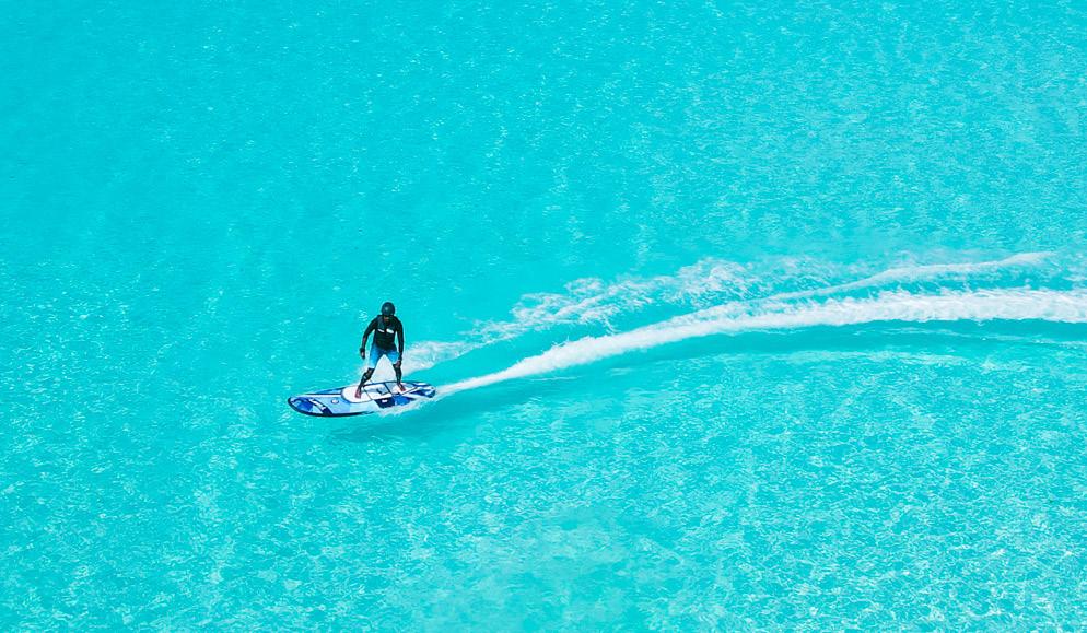 A new and exhilarating experience, E-Surfing involves being propelled through the water on a motorized, electric surfboard.