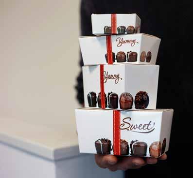 kan dan de opdrachtgever zelf had bedacht. Laatst kwam er bijvoorbeeld een makelaar die 250 miniverhuisdozen wilde laten drukken, om uit te delen aan klanten die bij hem een huis hadden gekocht. Waarom doe je dat niet veel persoonlijker, vroegen we hem. Compleet met het huis erop, en de naam van de klant. Dan print je ze één voor één, maar heb je écht wat unieks.”