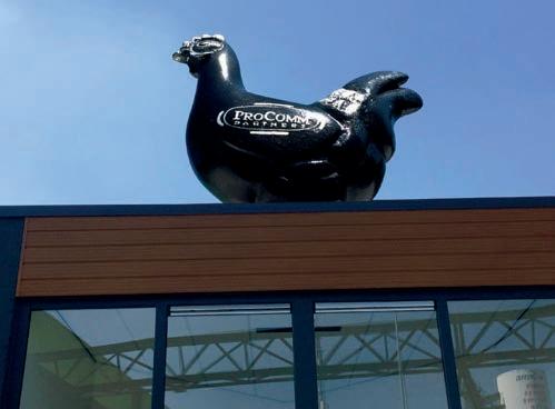 De kenmerkende kip verhuisde ook mee naar de Hanzeweg.