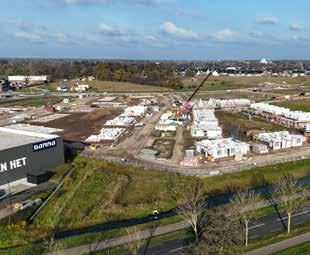 Achter de Gamma verschijnen de eerste woningen van De Lanen Oost.