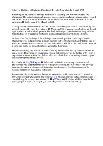 However, there's no need to navigate this journey alone. At ⇒ HelpWriting.net⇔, we understand the difficulties students face when tackling their dissertations. That's why we offer expert assistance to alleviate the burden and ensure your success.