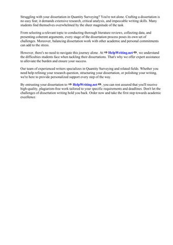 Struggling with your dissertation in Quantity Surveying? You're not alone. Crafting a dissertation is no easy feat; it demands extensive research, critical analysis, and impeccable writing skills. Many students find themselves overwhelmed by the sheer magnitude of the task.
