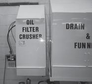upside down to drain for a few days before going to the incinerator, leaving much of the fluid trapped inside the filter. HTL in Lancaster recently installed filtercrushing equipment, making it possible to extract more than 90 percent of the petroleum-based fluids from those filters. The fluids, including gasoline, diesel fuel, hydraulic oils, and engine oils, are reused in a process for the roofing materials industry. The steel filter bodies are crushed to approximately one-eighth of their original size and recycled.