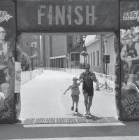 “I usually run an 8 to 9 minute mile. For the first two miles I was under my pace goal. Things were going well until mile 2.25, when my legs started cramping. I was not sweating, and knew I was dehydrated.” Jamie pushed on, drinking, eating and pouring water and ice over his head. Finally, he saw his family, and his oldest son, Hunter, escorted him to the finish line.