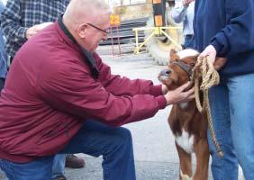 In Lancaster, HSSI held a ‘Kiss a Cow’ event. Co-workers purchased tickets to vote for co-workers they most wanted to see kiss the cow - or in this case, a calf named Bonnie, whose services were donated by Beth Tippett from Corporate Human Resources. The winning co-workers were: Steve Gerber, Vice President of Manufacturing; John Peiffer, Plant Manager, and; Sean Pitzer, Engineering Administration. As co-workers cheered them on, these good sports mooed and wooed Bonnie before planting a kiss on this bovine beauty’s nose.