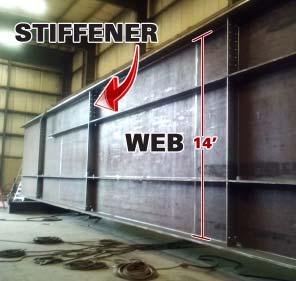 A hydraulic ram was used to push this 14foot web flat so it could be welded to the stiffener.
