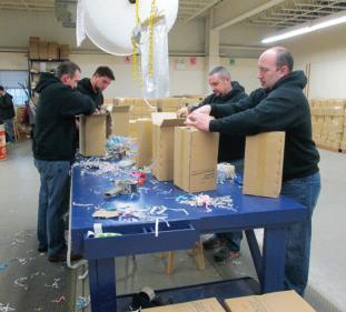 Mike Miletto, Anthony Durante, Kevin Zynn, and Rich Boyd pack items for shipment at Ten Thousand Villages.