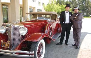 Jeremy Geib (Courtyard by Marriott) and Chris Tanner (Hampton Inn) pose by a vintage automobile from Calvin High’s collection.