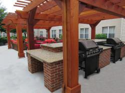 The outdoor space and refreshed lobby at the Homewood Suites by Hilton-Harrisburg West encourages guests to relax and unwind.