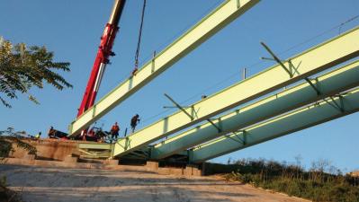 The photo above shows the fourth girder line being placed, while the photo to the left shows the site during construction of the