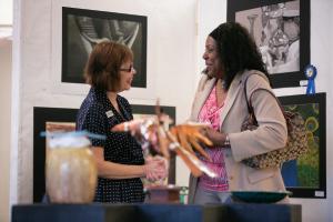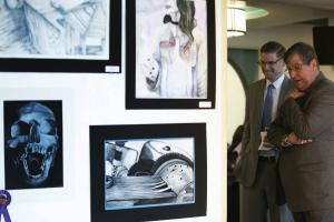 Co-workers, guests, and students enjoyed mingling and viewing the works of art.