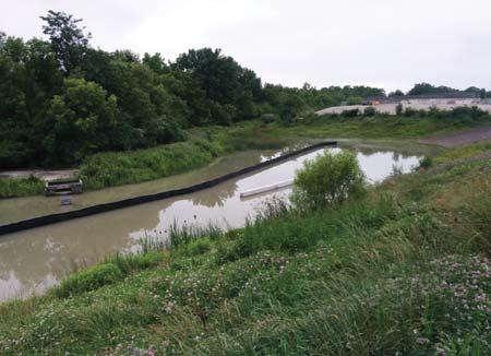 ● Placement of double-face barriers adjacent to where the outlet from the Batch Plant emptied into the SRP to slow flow and allow the majority of TSS to drop out of the stormwater, making it easier to remove solids from the SRP.