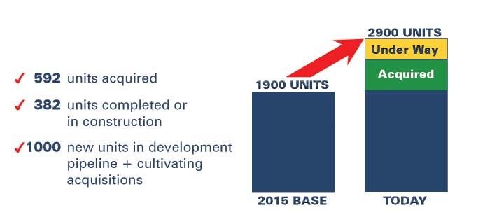 I am pleased to announce that Brad Mowbray and the High Associates Ltd. Residential team are about half-way towards accomplishing this goal, having locked in 1,000 more units. Roughly 600 of these units were acquired since 2015, and about 400 are under construction or recently completed. Additionally, we have a robust pipeline of new development opportunities.