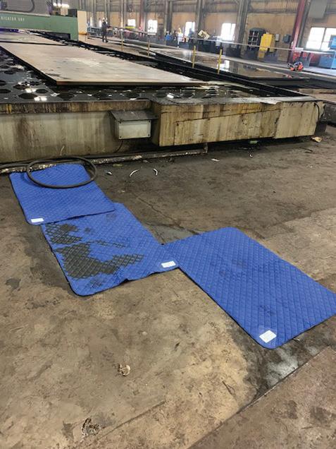 The current practice at the HSS plants is to use disposable pads commonly referred to as “pig mats.” This requires a high number of pads that are thrown away in the trash and eventually end up at the local landfill. The new product is a more robust pad, quilted to withstand HSS’s harsh working environment. Compared to traditional pads, this new product absorbs two-and-a-half times the amount of fluid, reducing handling and the resulting manpower required to change them. Pads can be walked on, and even driven on, if necessary. Soiled pads are placed in plastic drums.