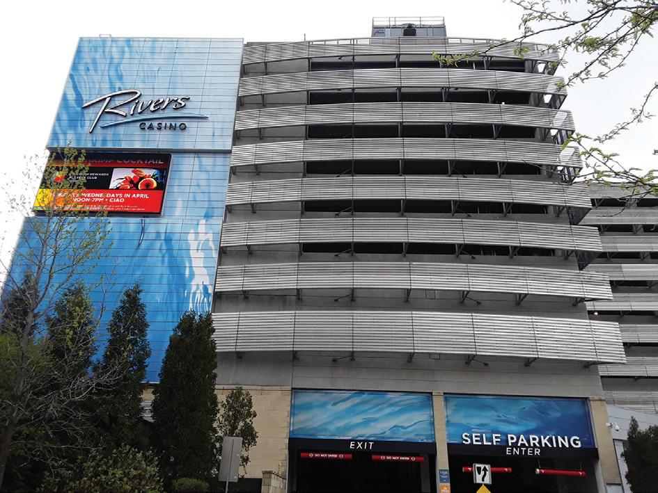 Exterior of the River’s Casino Pittsburgh parking garage.