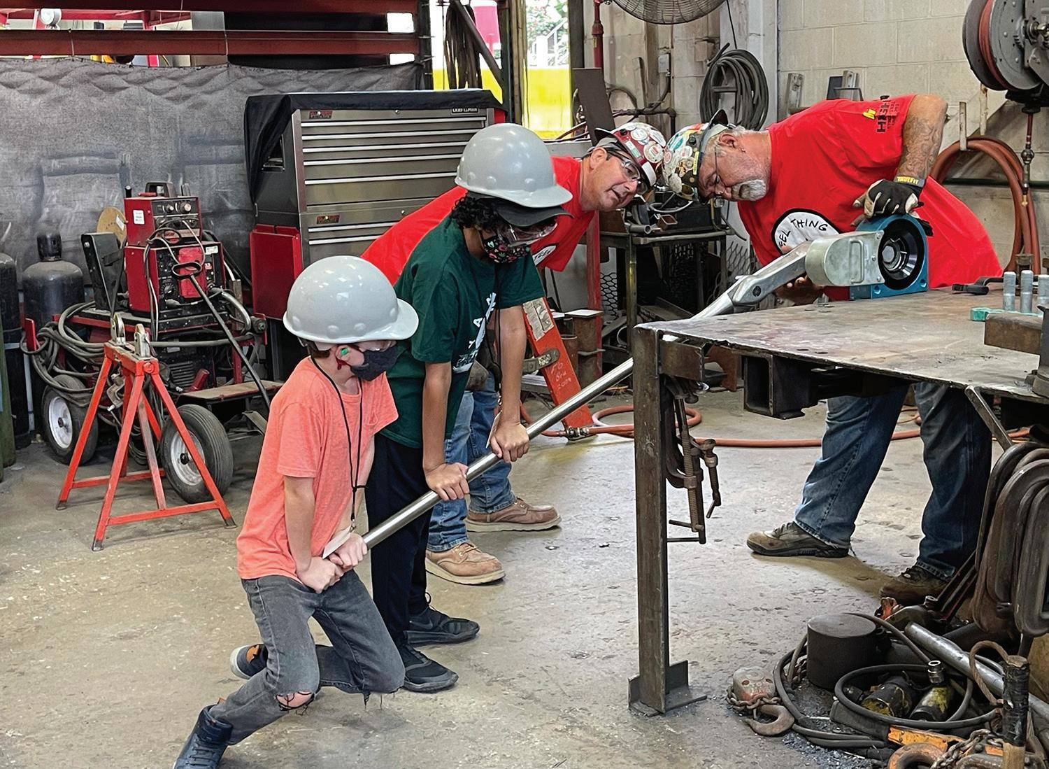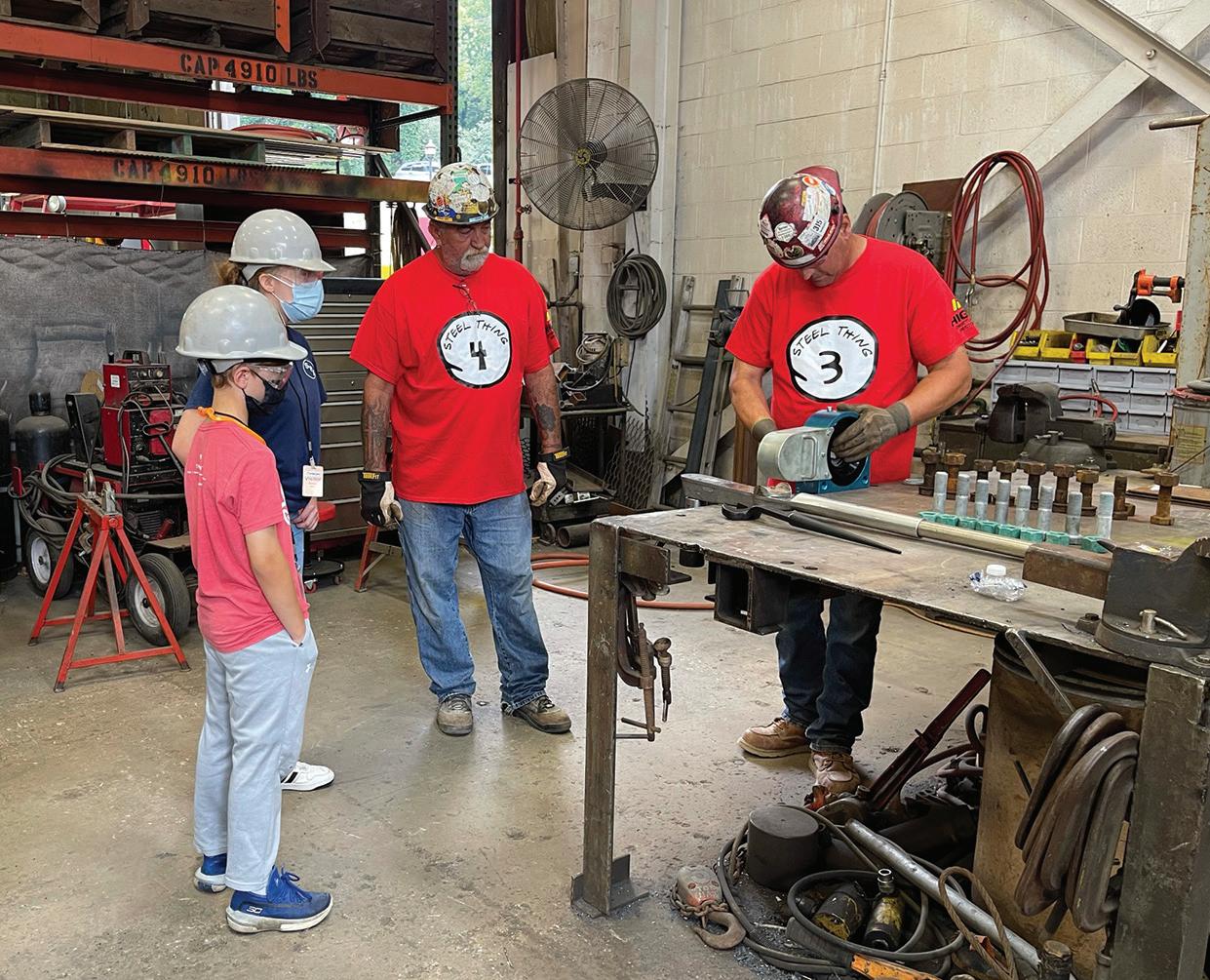 Campers, with High Steel Structures’ Michael David and Scott McClune, put some muscle into the torque test.