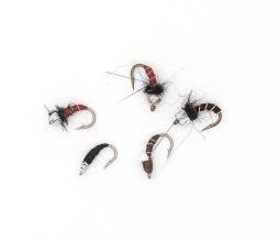 to utilize a dropper rig off your dry. Maybe something like a size 6-10. Otherwise, stick with smaller size 10-16 stimulators, ants, beetles, chubbies, caddis, Royal Wulffs and humpies, because they all will bring trout to the surface for a strike. Incorporate some yellow, red and orange into the mix for quick action.