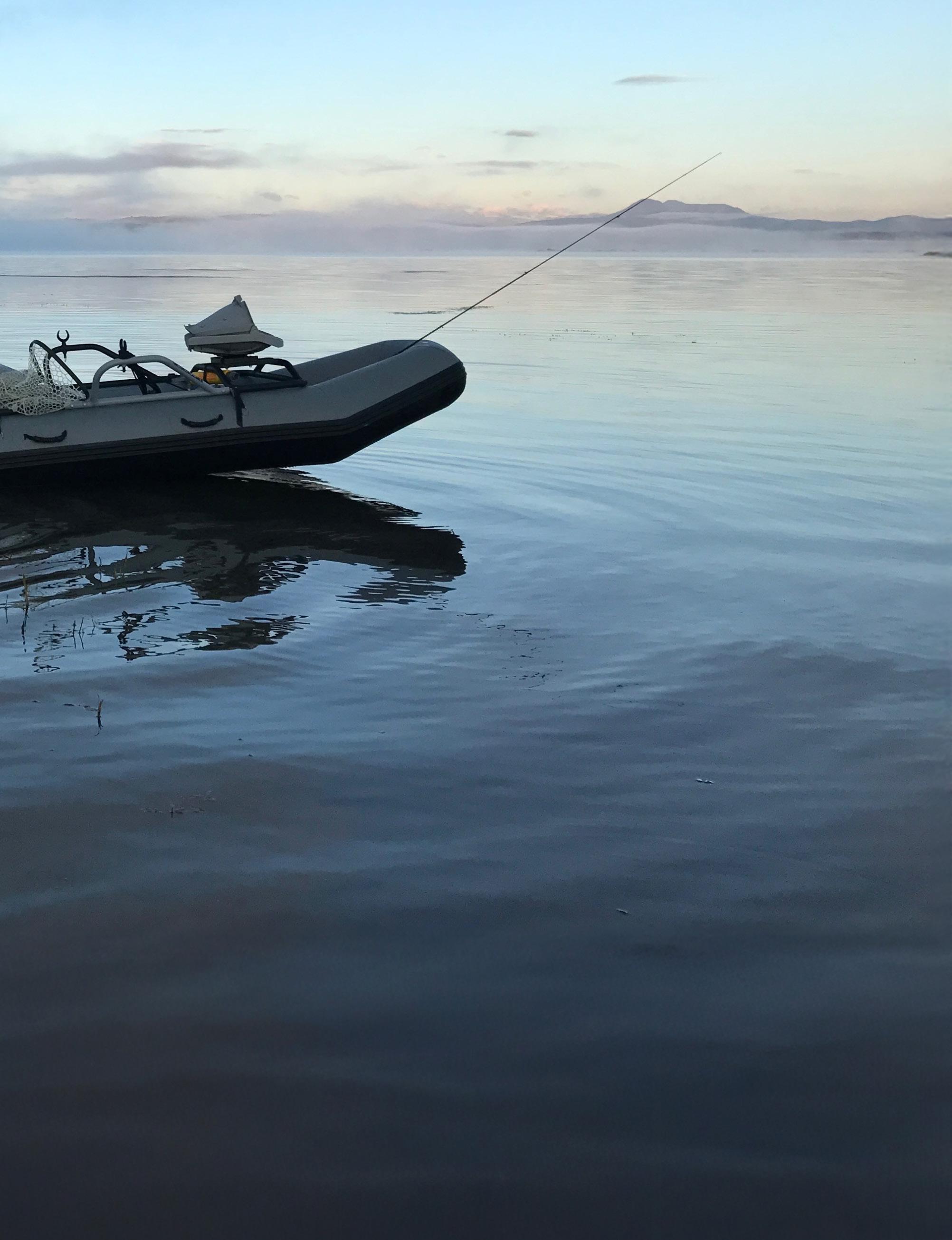 1) THE FIRST and most common way to present flies in still waters is to suspend the fly below an indicator—one that is capable of suspending heavy rigs. Try using a 9 to 12 foot, 3x to 2x fluorocarbon leader attached to two pieces of 18-24 inch tippet material of the same strength connecting the two flies. This allows you to adjust to different depths throughout the day by moving your indicator. One trick I like to use is weighted flies over split shot. This gives you a slow rise and fall of your flies, keeping them more visible to cruising trout. And then strip in a few feet of line periodically, pausing periodically. This resembles the movement made by emerging insects.