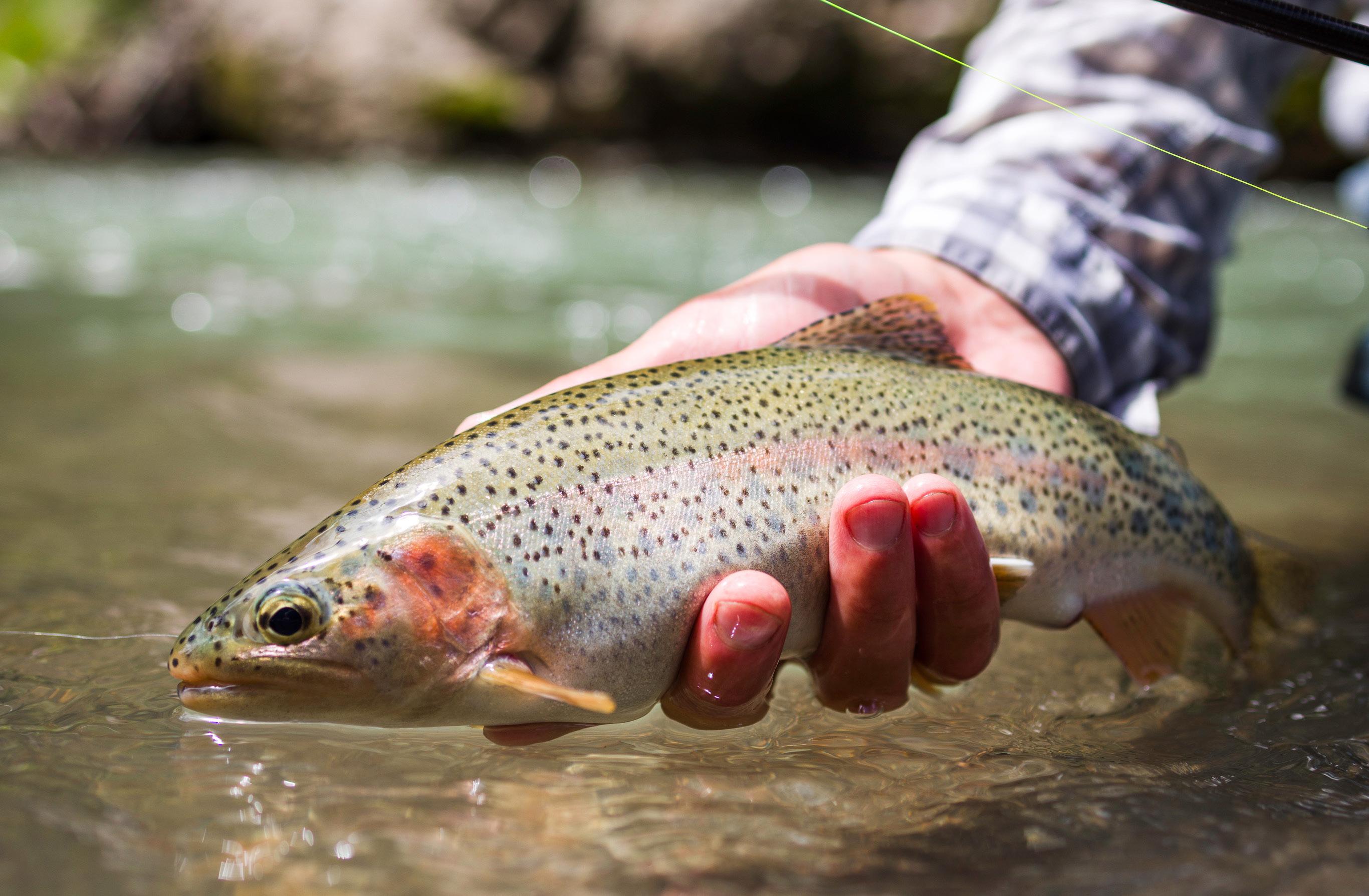 reservoir fishing happens when you see trout rising in still water. This can be a challenge, but also an incredibly rewarding experience! In these situations, try using a long monofilament leader with an 18-24 inch connection of fluorocarbon tippet. This keeps the trout from seeing the fly line, and keeps the leader afloat. Unlike their river-dwelling companions, fish that rise in still waters are on the move and you cannot present in the same place with every cast. Instead, the key is to watch the direction of the trout’s head, so you can tell where it is searching for food. Once you determine this, lead the fish by two to three feet, giving it a chance to locate its next meal. This will result in more sips, followed by a rewarding acrobatic leap into mid-air.
