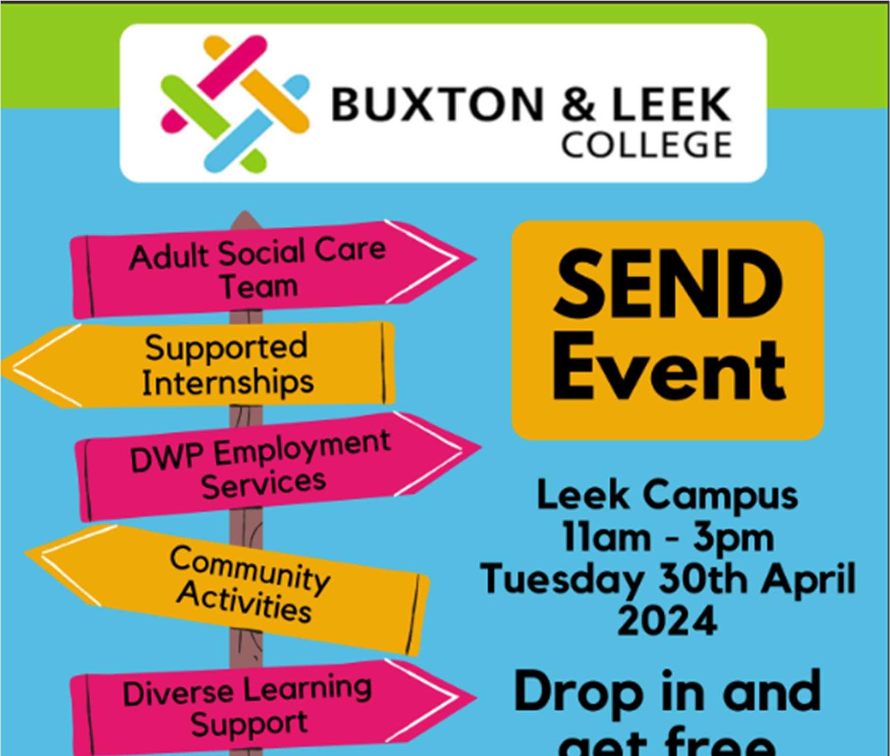 Buxton and Leek College have a wonderful SEND event happening at the end of April in Leek and very early May in Buxton. As you'll see from the posters, they have a huge range of people coming to speak to students. The event is also open to parents, and you and your students can book a slot to come and speak to all our visitors.