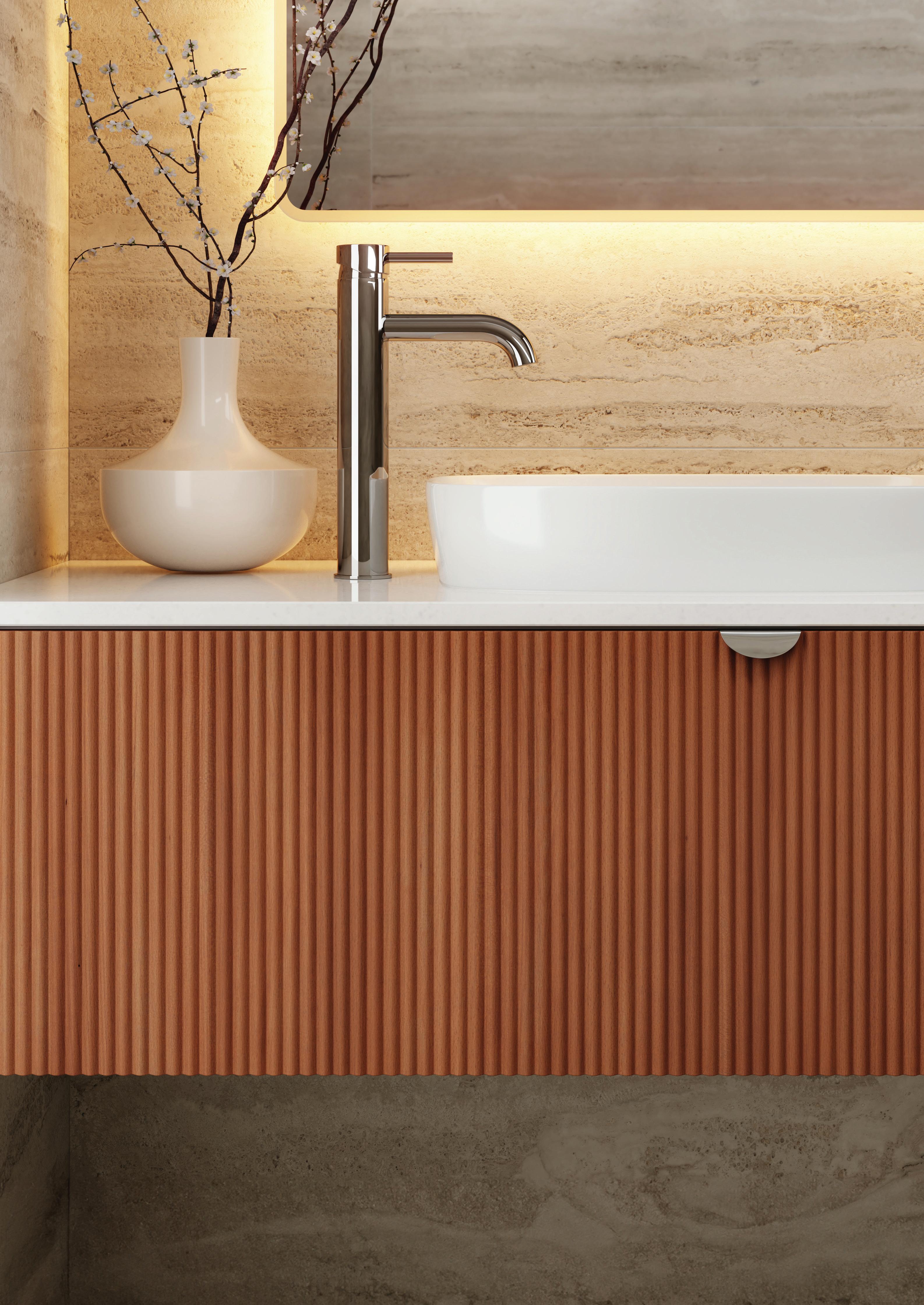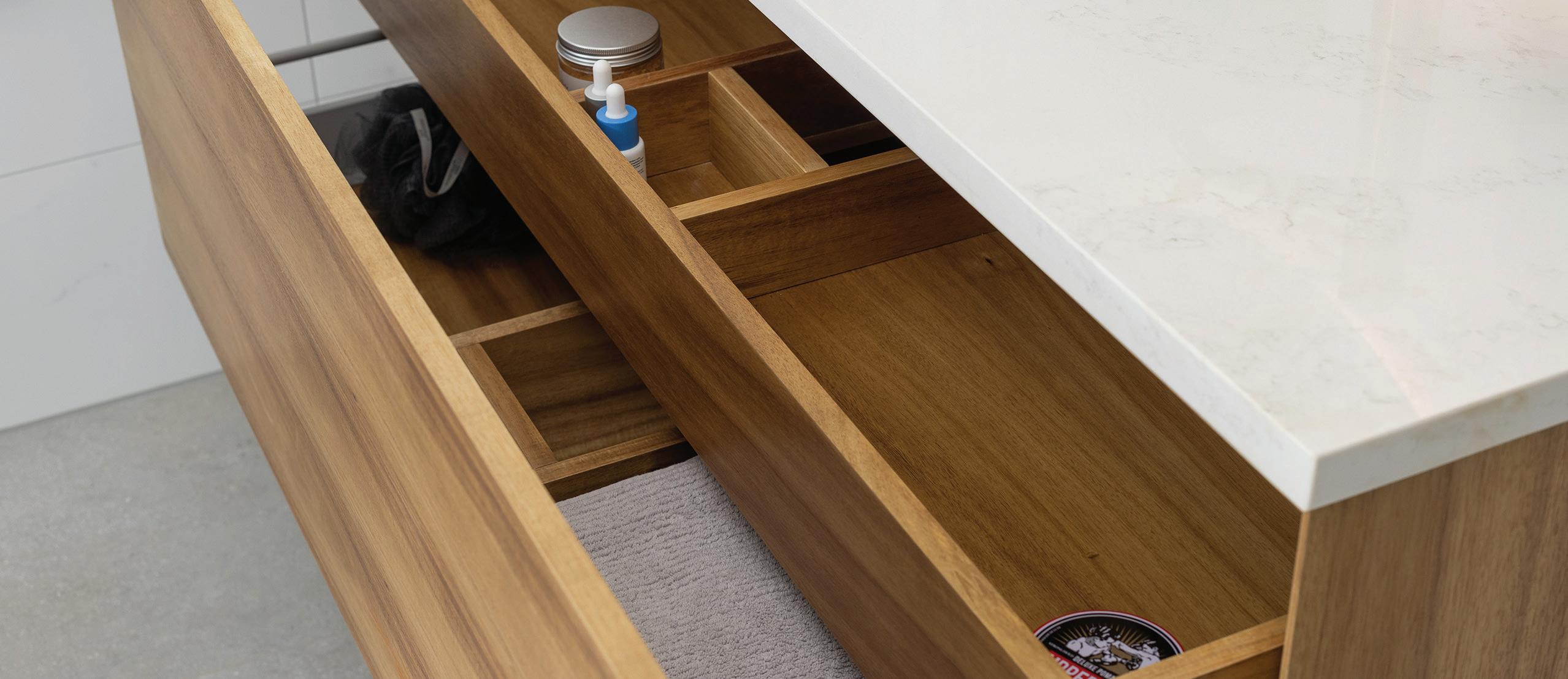 Personalise your vanity with a range of interchangeable drawer front designs.