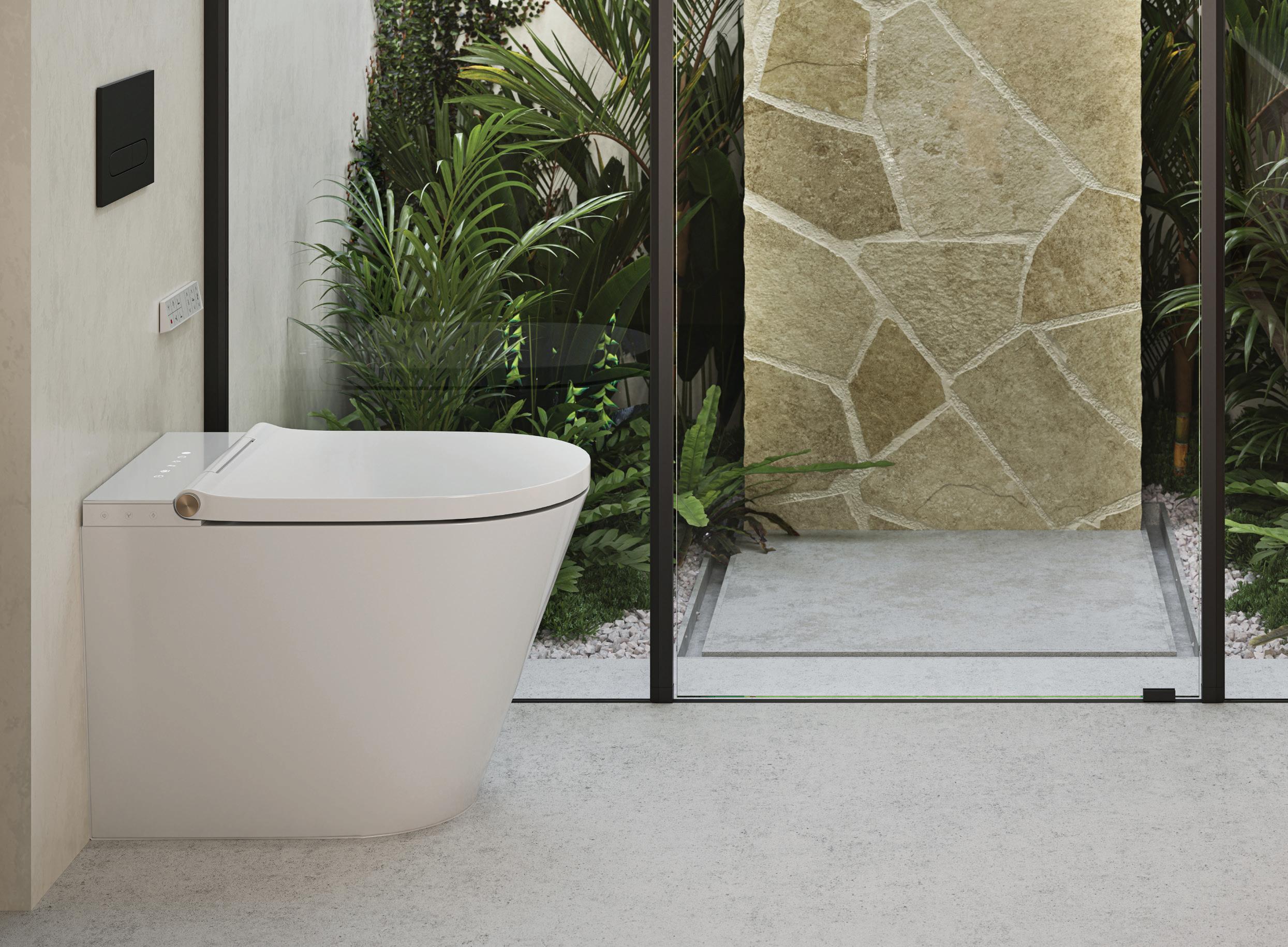 Transcend your bathroom with the latest in innovation and cutting-edge technology, as this statement piece offers an array of intelligent features, including seat heating, washing and drying options, an elegant night light, and more – all effortlessly controlled with a remote.
