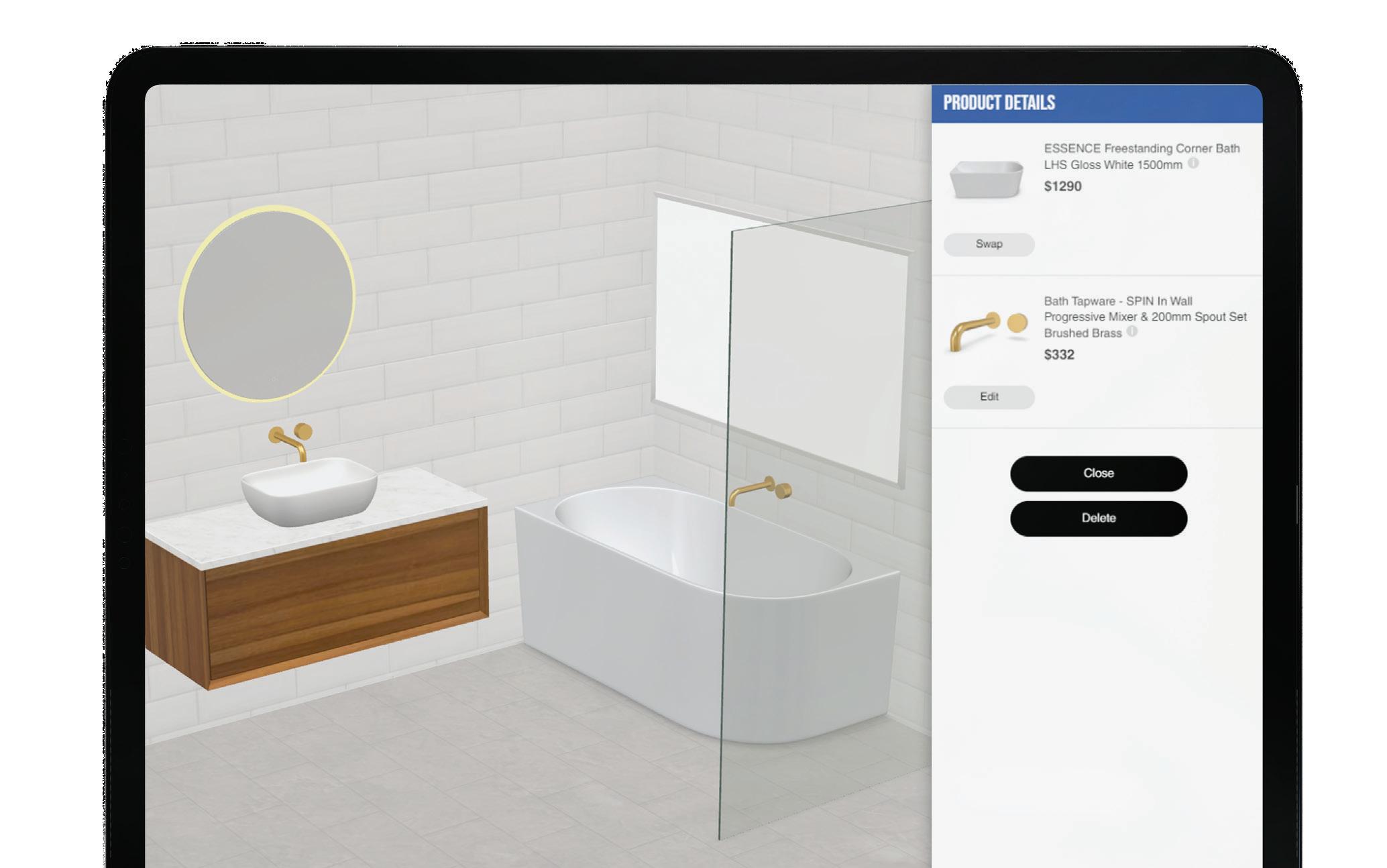 • Customise everything from shower systems to vanities to suit your space with our Product Configurators.