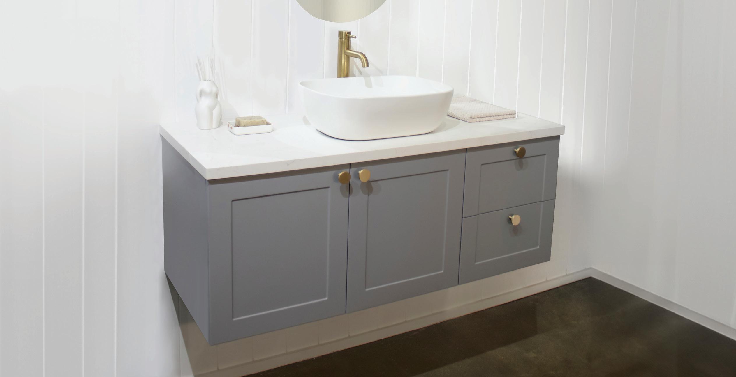 Our modular vanity range offers endless possibilities for your bathroom. Choose from a variety of sizes and stunning drawer front designs to configure the perfect vanity for your space.
