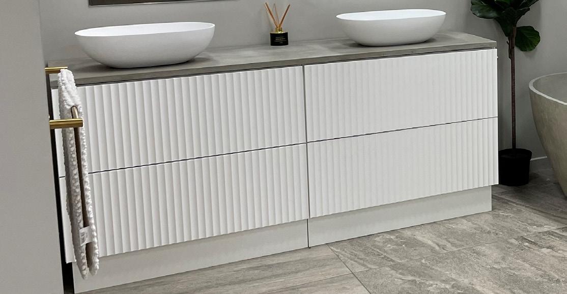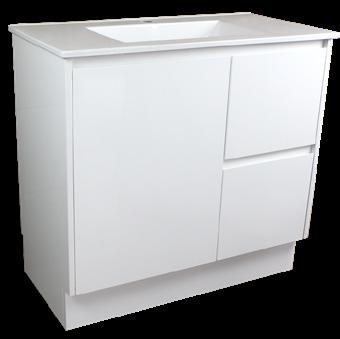 The WAVE and KIMBERLEY Vanities can be customised, with single drawer, double drawer or three drawer options to meet any bathroom needs. Available in 600, 900, 1050, 1200 and 1500mm options. The curved feature ends measures 150mm each which is included in the overall sizes mentioned above. Please ensure you review specifications carefully before installation.