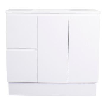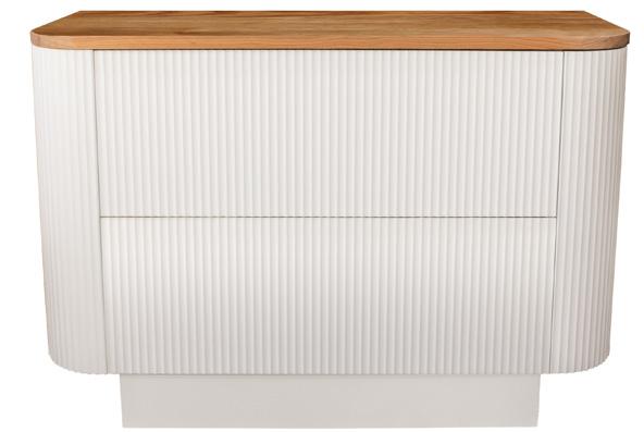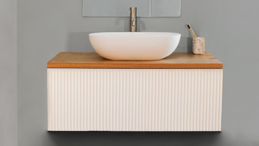 The WAVE drawer front design will add a sleek look with delicate detailing, using a smooth bevelled edging that frames the vanity beautifully. Available in Matte White. WAVE