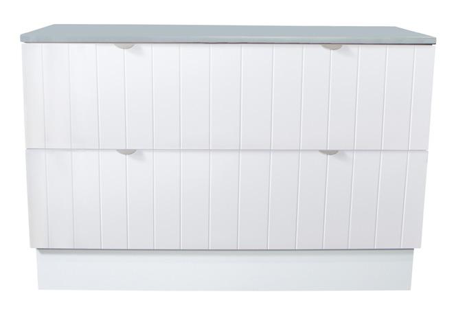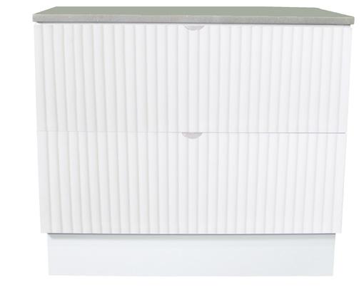 The SWELL drawer front design adds a sleek look with its delicate fluted detailing, available in Matte White.