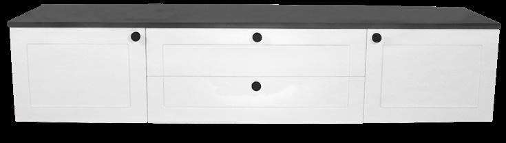 Featuring a single and large timber drawer, with black BLUM soft close technology, and a “hidden” top sliding drawer, with U Shape back for additional storage. Tops sold separately.