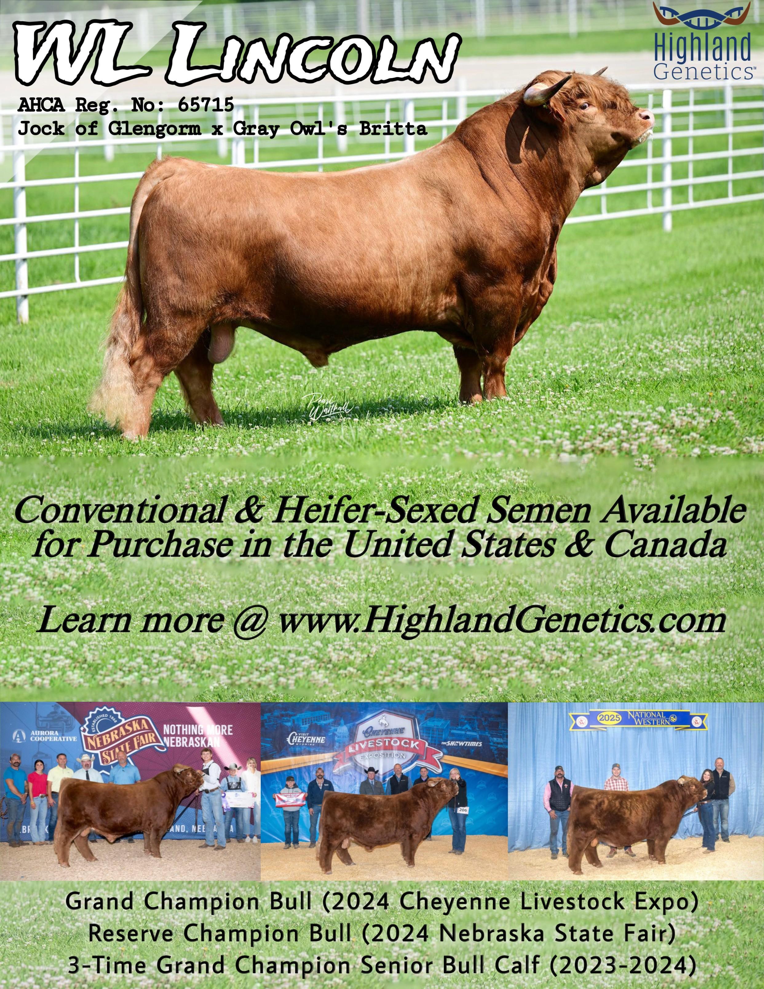 Faaaannnccyyy. WL Lincoln had an outstanding show career as a young bull. Sired by the extraordinary Jock of Glengorm and out of the great Gray Owl’s Britta. Substance, mass, and true maternal power all wrapped up in one animal. His first calves have been jaw-droppers… The future is here!