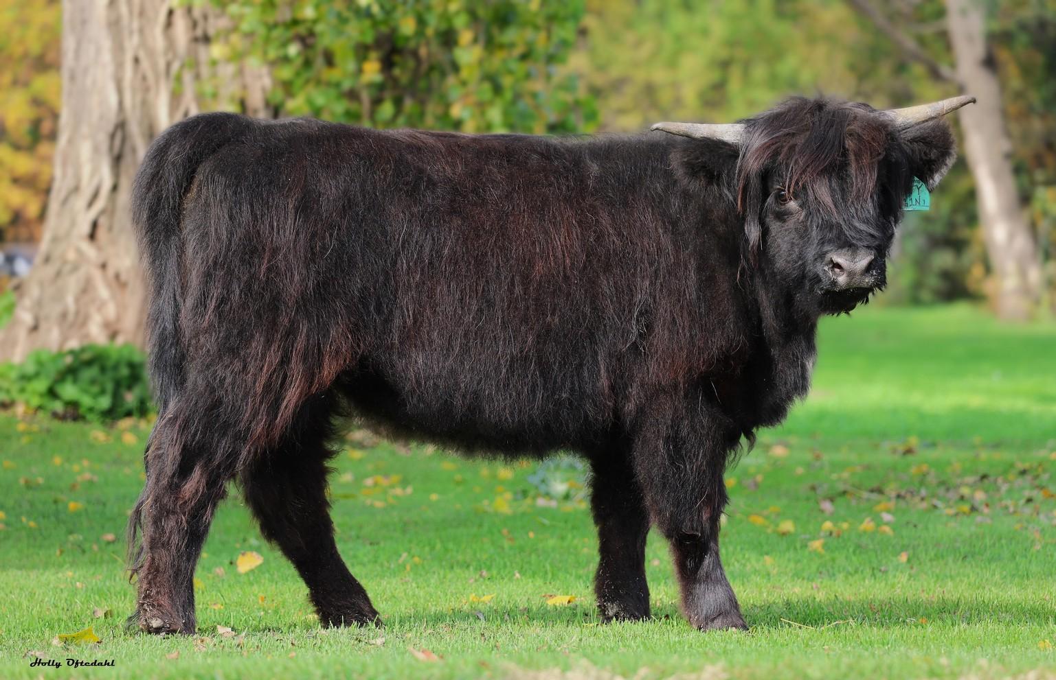 MRW Anna is an extremely docile heifer. No doubt it comes from both her sire JLD Moonstruck L and her dam. Katriona of Highland Heritage. “Kat” is a Canadian import from Alberta sired by the great black bull, Prince Charming Heritage 20C. Who is known for producing females that are docile, proportionally muscled, and very productive. Anna has been very easy to halter train, enjoys being brushed, and we will continue working with her over the next month. No other Genetic Testing has been conducted on MRW Anna. Here’s a heifer with a lot of genetic diversity and well-made animals in her lineage!