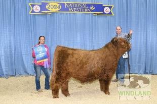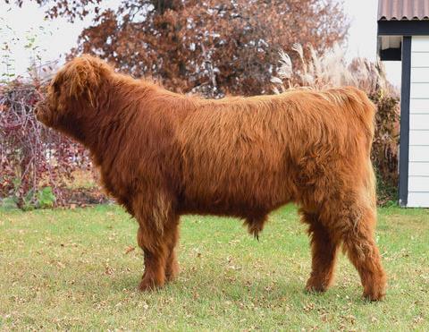 Your 2023 National AHCA Champion Bull. He weighed 1,822 with a ribeye of 18.3 inches at the show in January 2023. He is long, extremely wide, and absolutely correct. Plus, this Athletic bull walks like a cat, absolutely correct in every movement. His scrotal circumference is 43 cm (Feb 2022). He is the full brother of STR Revolution, a NWSS National Champion Bull. His mother is a three-time NWSS National Champion Female, STR Enchanted. His father is STR Ruthless Game, who was a NWSS National Champion Bull and whose sire was a Australian National Champion. Wow, can you pack more powerful genetics into an animal! To top it off, this Brindle boy is cool, calm, and collected on halter and loves to be brushed. He brings the whole package on what you want to have when selecting a bull. This is not only an outstanding Highland bull, but an outstanding bull, no matter what breed.