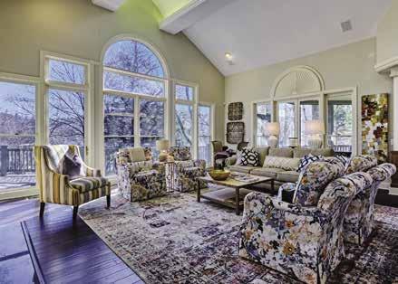 is greeted by wood, stone and cedar shake exterior detailing, a dutch door and gas lanterns. Many interior walls are painted shiplap, hardwood oors are nished with muted warm grey tones, specialty lighting is featured throughout and unexpected pops of color punctuate each room. Most furnishings are negotiable and may be purchased separately from the real estate. MLS 101511