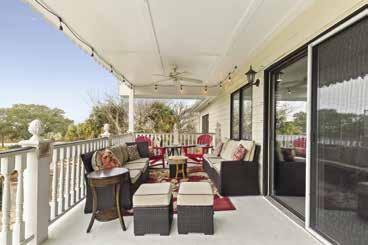 kitchen boasts gas range, many built-ins, a spacious pantry, and a lovely breakfast room with sun-lit windows and doors out onto the deck. The home has a 2-car garage, readily accessible from the main oor. Upstairs is one bedroom with an ensuite bath, and downstairs is a large, beautiful area with spacious den with replace, two bedrooms and 2 baths. There is also access to a single garage for the golf-cart. Walking outside from this area takes you right to the golf course! MLS 101675