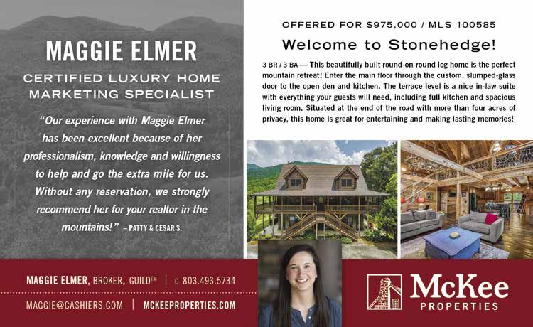 | THELAURELMAGAZINE.COM For nearly half a century, McKee Properties has helped define the Cashiers-Highlands Plateau, setting the standard for premier real estate and the area’s luxury mountain lifestyle. Elevated living CASHIERS, NORTH CAROLINA mckeeproperties.com 828.743.3411